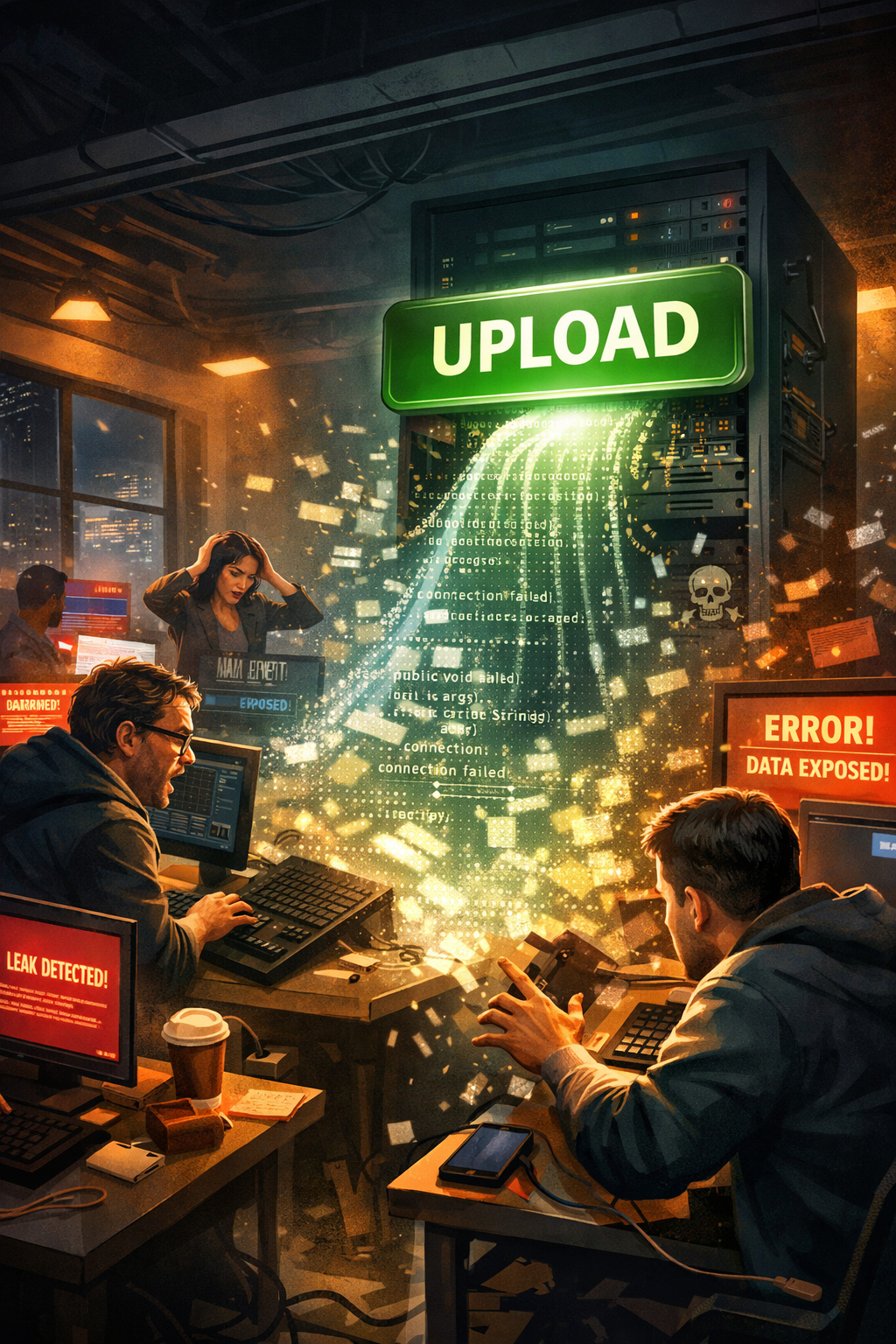 One slip → public archive → thousands of copies → malware piggybacking on top.